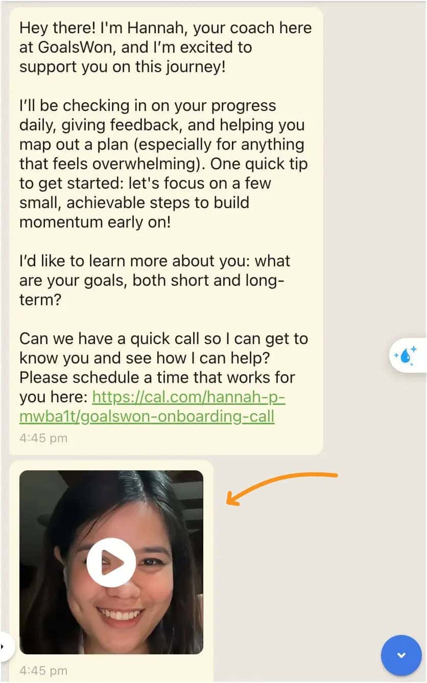 When I started, my coach Hannah reached out with a kind welcome message and offered a short call.